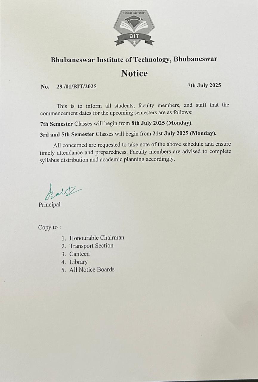 Bhubaneswar Institute of Technology (BIT), Bhubaneswar is a growing technical institution with an excellent track record of its performance over the last 8years in the state of Odisha. The faculty and students always strive hard to maintain its position..